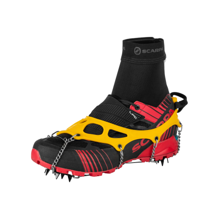 Son ajustables y se adaptan a cualquier tipo de calzado rígido. Equipado con el sistema proactivo Antibott Grivel tanto en la parte delantera como en la trasera.