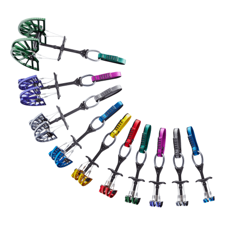 •          Los tamaños n. ° 4, n. ° 5 y n. ° 6 utilizan un sistema de cierre innovador para hacer las dimensiones más compactas y facilitar el transporte en el arnés