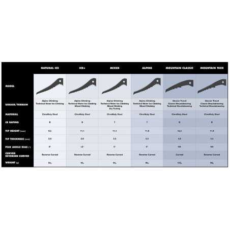 Lama di ricambio per picozze Black Diamond specifica per ghiaccio.